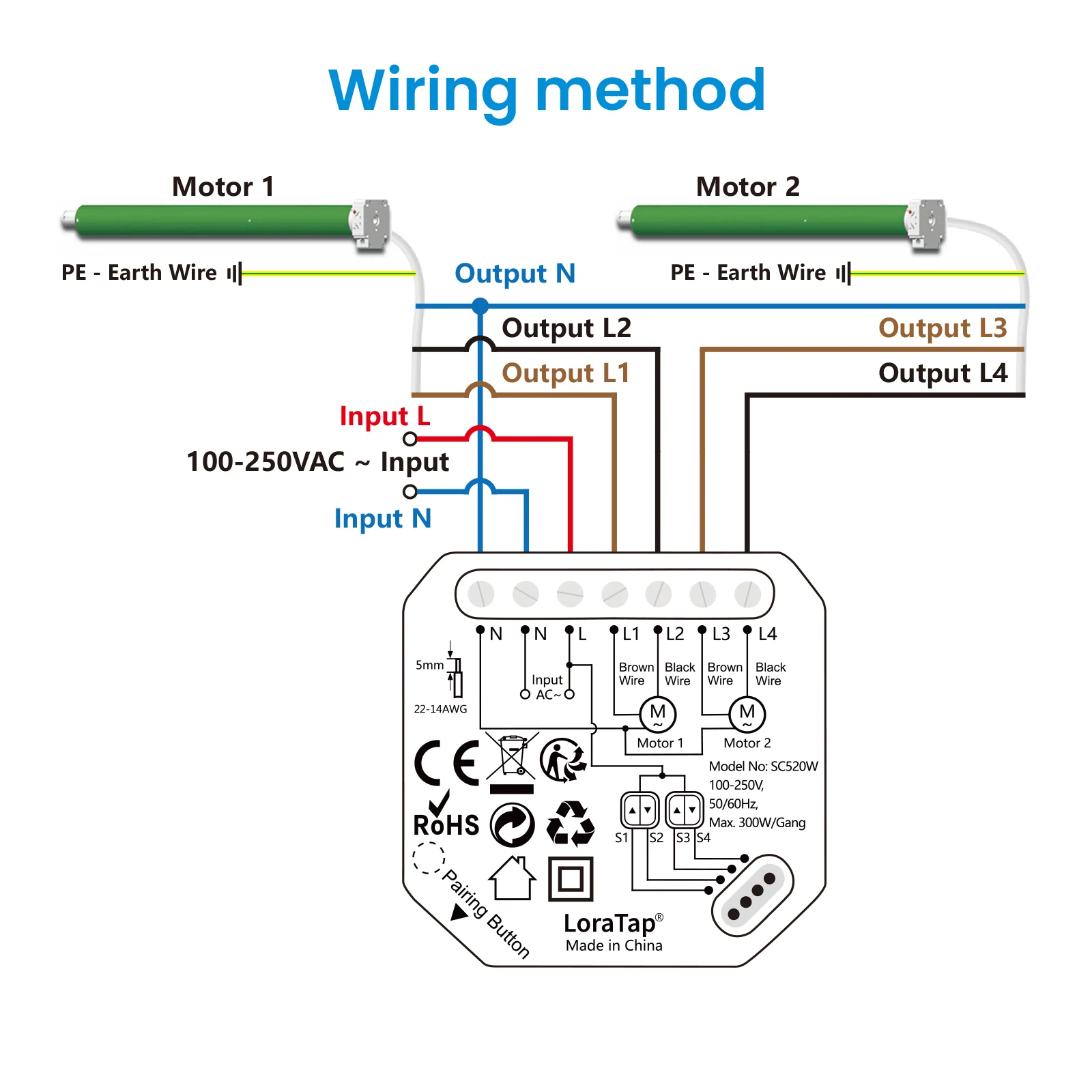 - Controllo interruttore a parete: dopo aver installato questo modulo, l'interruttore manuale a parete funziona ancora, può aprire o chiudere l'otturatore.